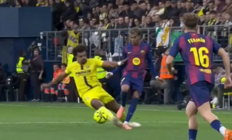 وجاءت الواقعة في الدقيقة 38، عندما كان لامين يامال يستعد للسيطرة على الكرة في وسط الملعب جهة اليمين، في لقطة لم تكن تشكل أي خطورة حقيقية على مرمى فياريال.